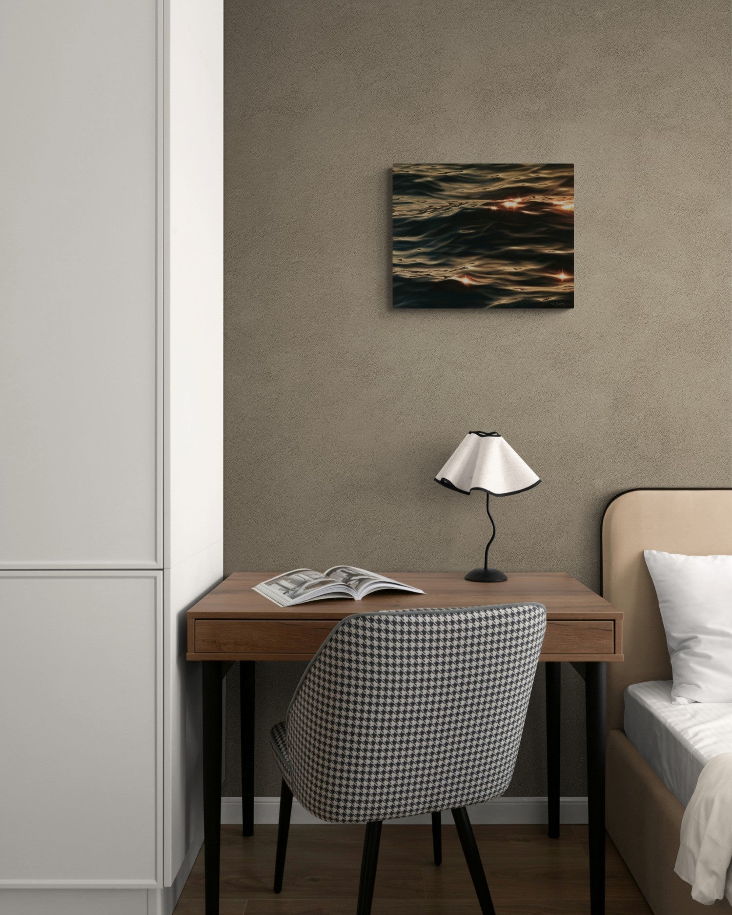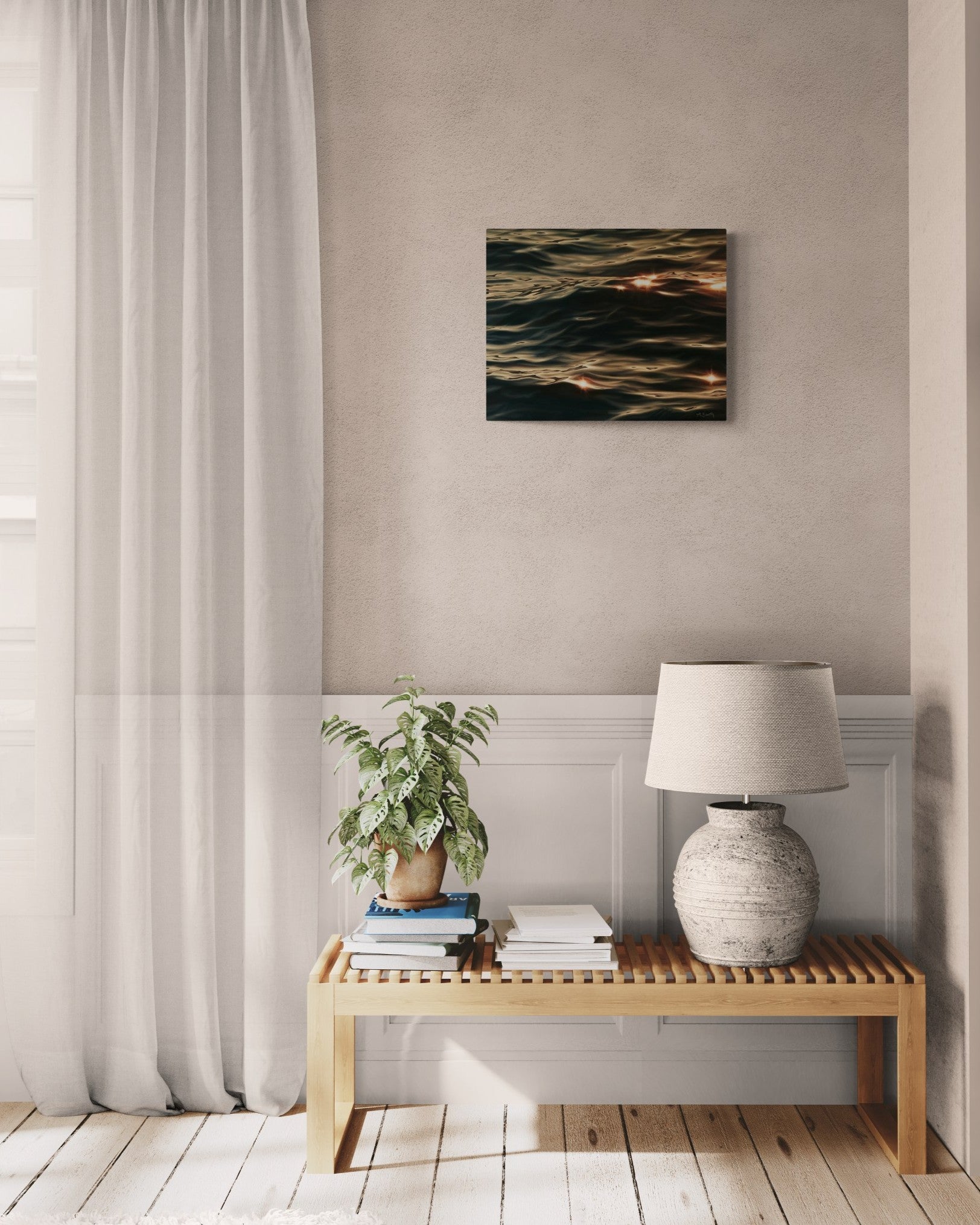 Embers of the Tide is inspired by the way light glows on the water’s surface, like embers shimmering just beneath. These gently moving waves feel both calm and full of energy.